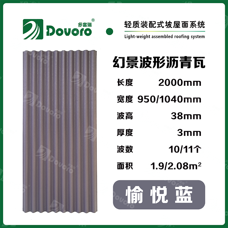3、幻景波形瀝青瓦多用于有檁體系屋面和普通民用建筑, 主要包括舊屋面翻新、平改坡、一般住宅、工業(yè)廠房、倉庫和農(nóng)村建筑。
