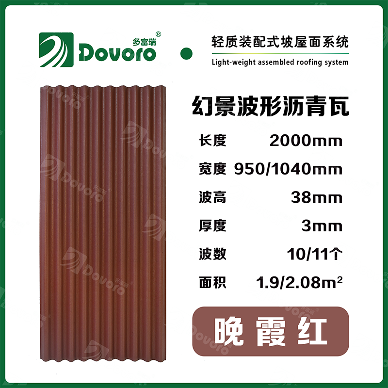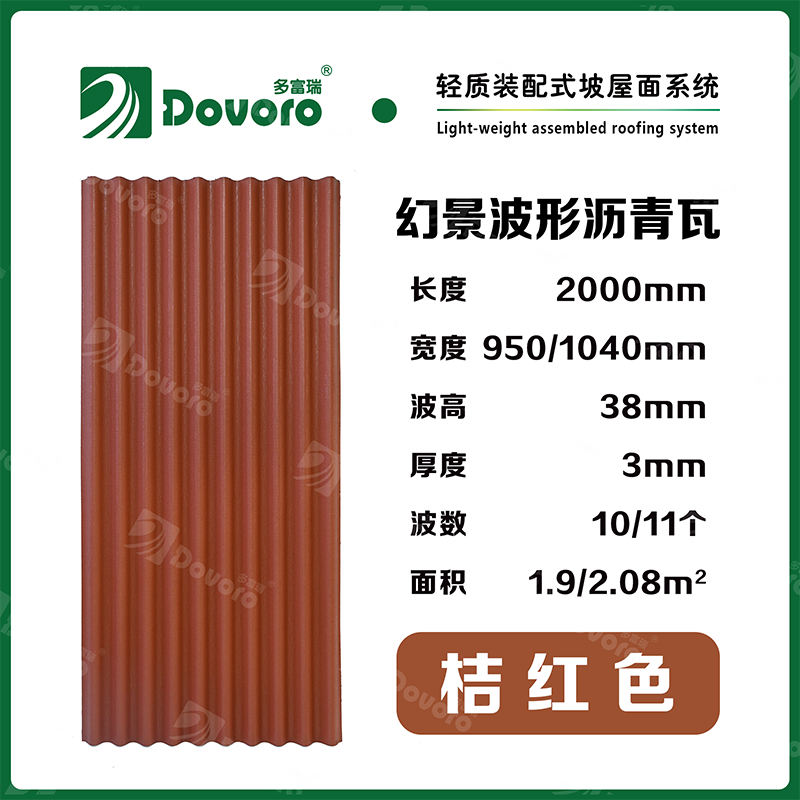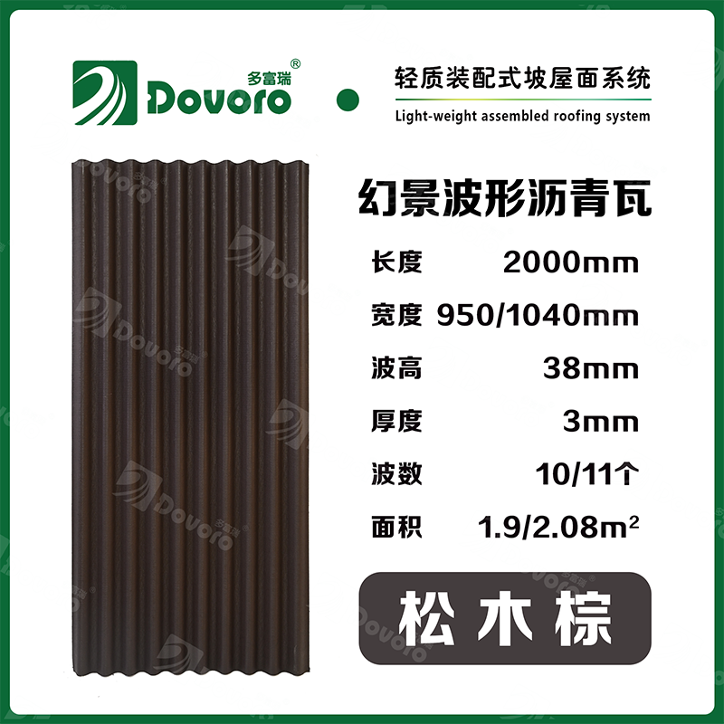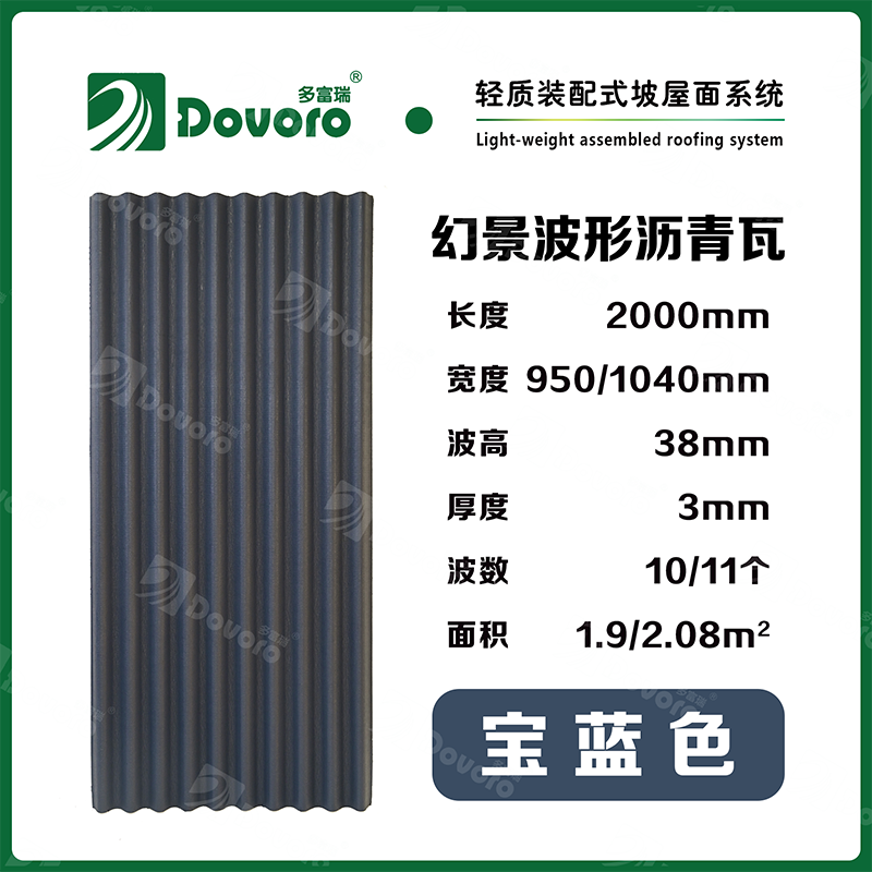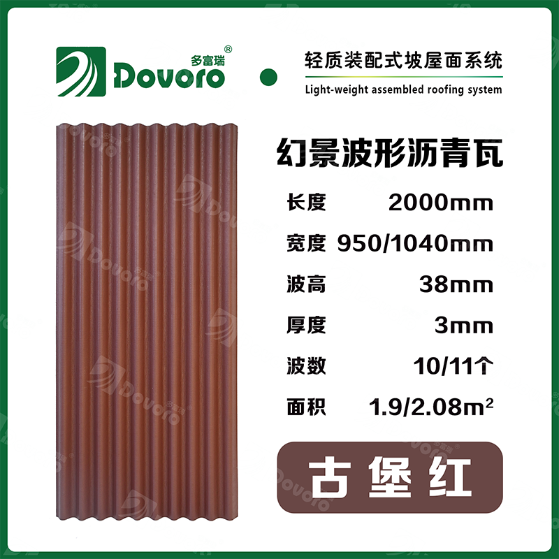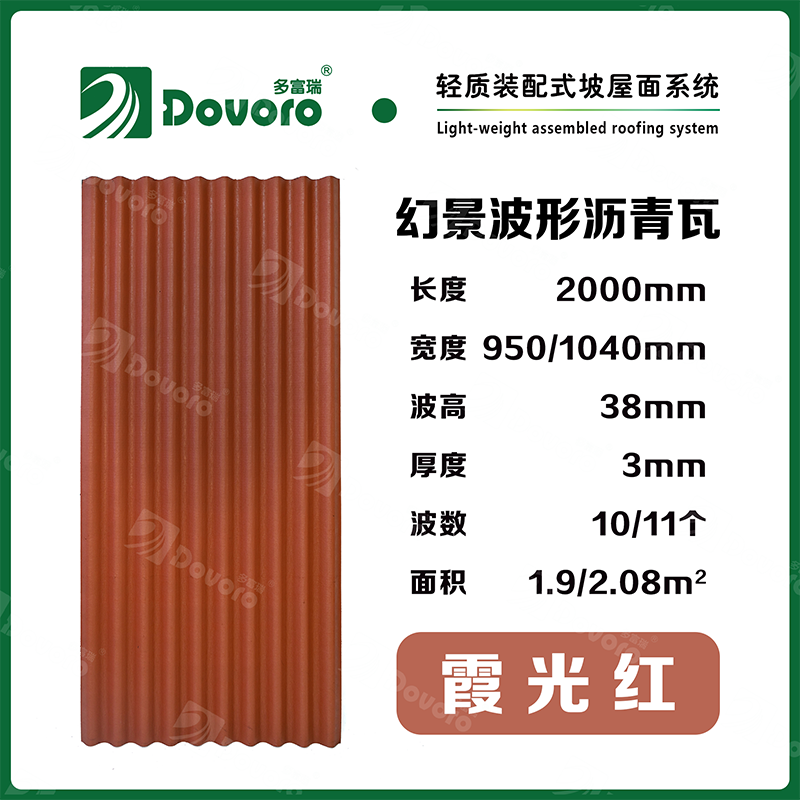 1、多富瑞幻景波形瀝青瓦由礦植物纖維在高溫高壓下浸潤瀝青而成,瓦材整體更加牢固且具有很強(qiáng)的韌性,熱固性樹脂為材料保持強(qiáng)度;