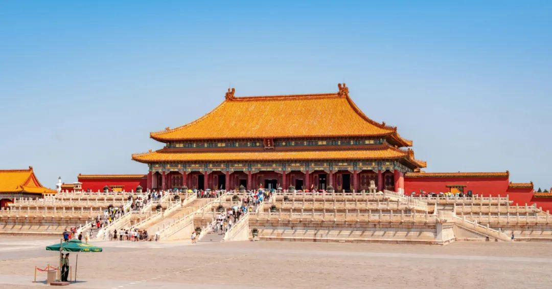 廡殿頂是古建筑中等級(jí)最高的一種屋頂形式,多應(yīng)用于宮殿和寺廟,是皇權(quán)與神權(quán)的體現(xiàn)。在實(shí)際上,廡殿頂已經(jīng)成為中國古代皇家建筑獨(dú)有的一種屋頂形式。在瓦的選擇上,多為琉璃瓦,顏色以金色為主。