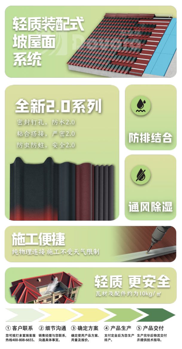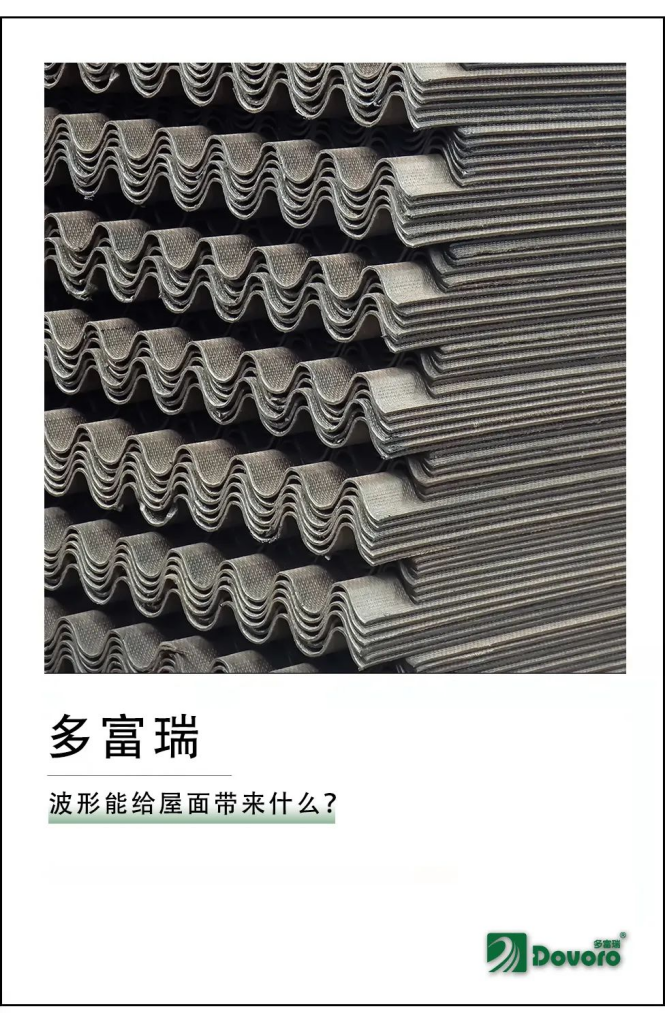 多富瑞賦予波形瀝青瓦與防水板獨(dú)特的波形,幻景、幻彩、防水板均有不同的波形設(shè)計(jì)。波形比平直的造型花費(fèi)更多的材料與工序,能給一個(gè)屋面帶來(lái)什么?