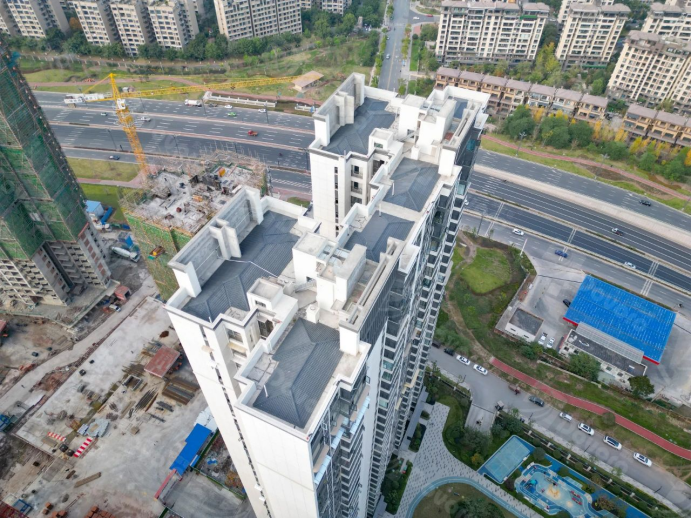 四川自貢跨貿(mào)港在多富瑞“幻影”型波形瀝青瓦的輔助下,無論是前期施工方面的便捷性,還是在建筑的交付運(yùn)營階段,屋面的防水性能以及安全特性,都達(dá)到新的層次,獲得施工方和業(yè)主的高度認(rèn)可。