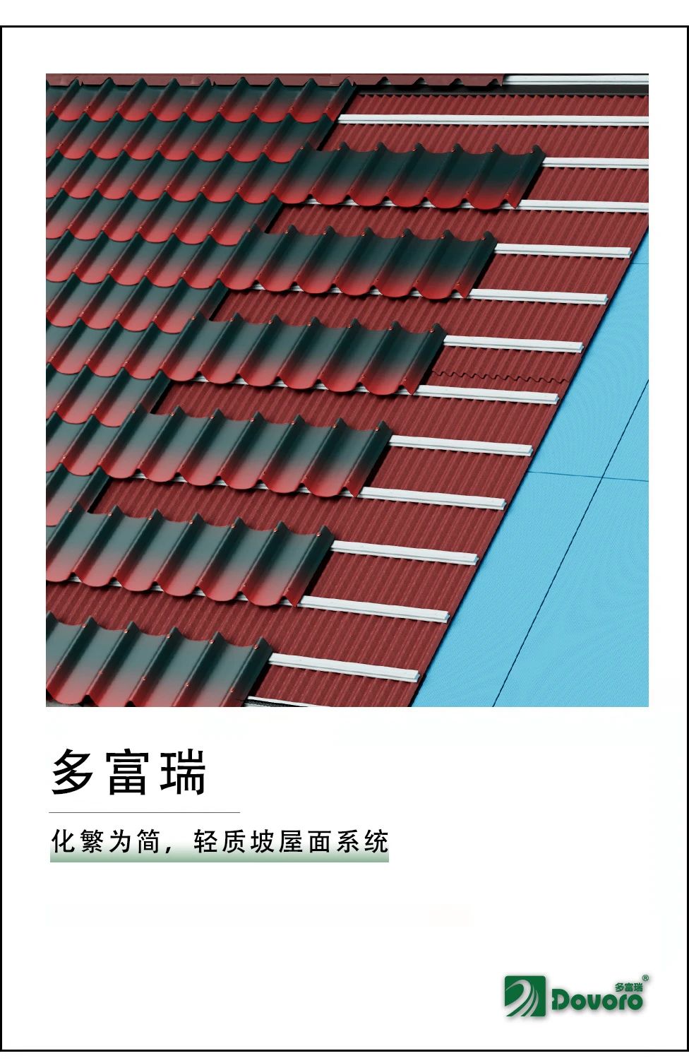 化繁為簡,以簡馭繁。多富瑞輕質(zhì)坡屋面系統(tǒng)精簡了屋面構(gòu)造,代替?zhèn)鹘y(tǒng)屋面的繁瑣做法,給坡屋面帶來更多可能性。