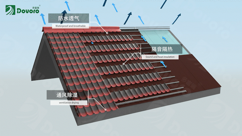 “幻彩”波形瀝青瓦與波形瀝青防水板組成輕質(zhì)坡屋面系統(tǒng),集輕質(zhì)、防水、透氣、隔熱、靜音、施工便捷等優(yōu)點(diǎn)為一身。
