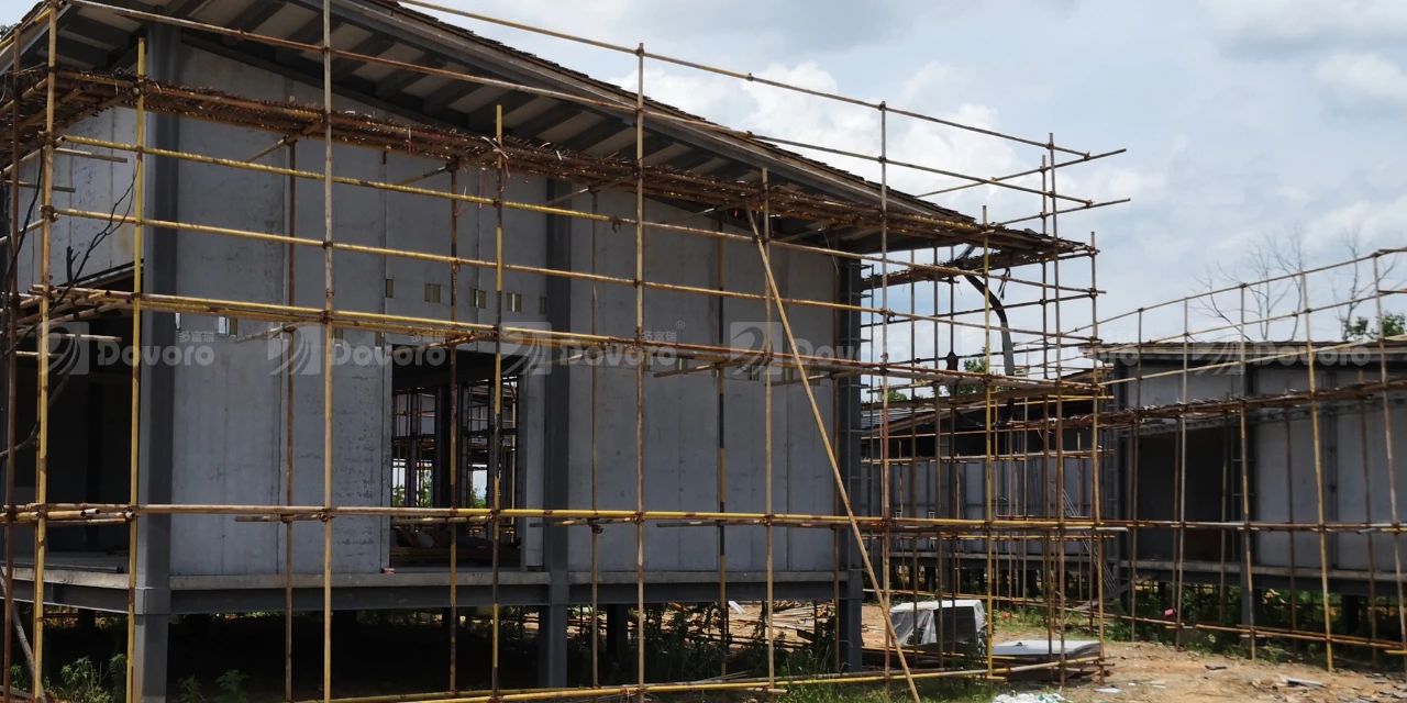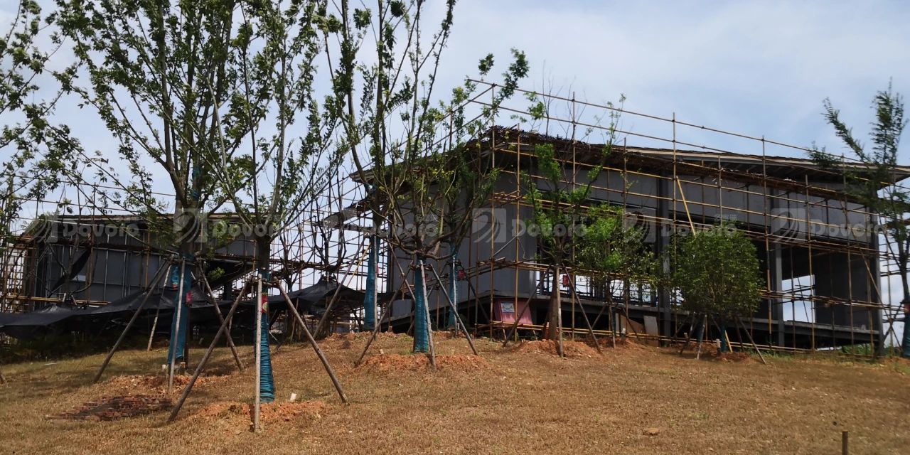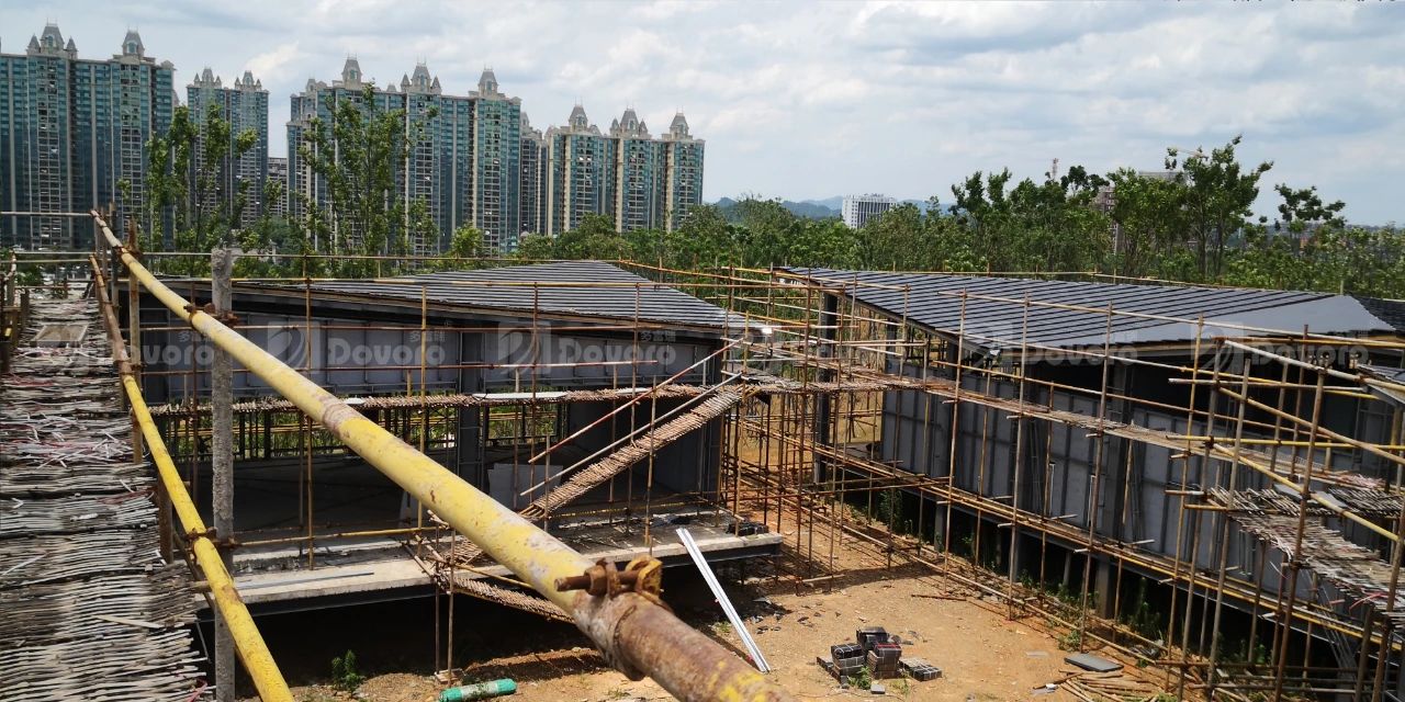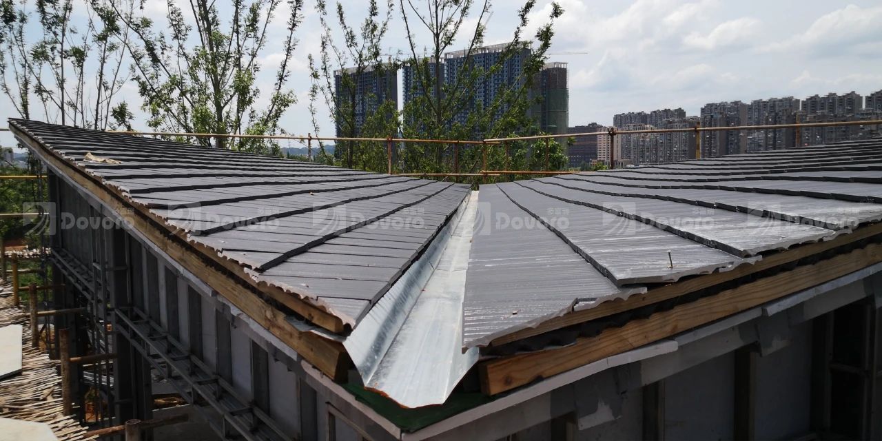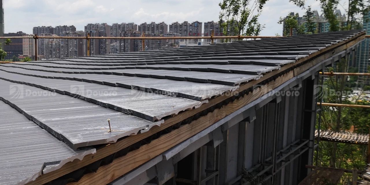本項(xiàng)目中建筑采用鋼結(jié)構(gòu)裝配式設(shè)計,波形瀝青防水板可以在各類屋面基層上快速安裝。