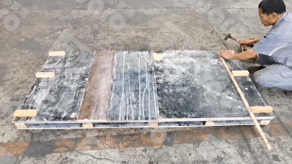 在木板的兩側,使用等同波高,等同波距的木肋條進行產(chǎn)品固定,使得產(chǎn)品在運輸中更加穩(wěn)定,不會因為貨車的加減速而造成整體位移,同時保證貨物的尺寸不會變化。