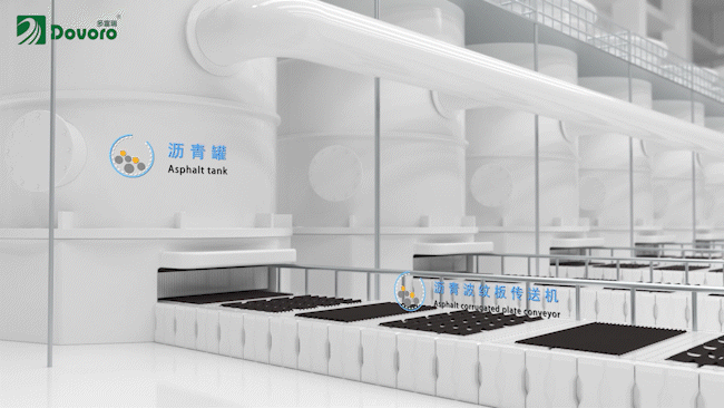 在高溫高壓瀝青罐中,瀝青會牢牢浸漬在紙板里,與紙板融合一體。當紙板從瀝青罐中出來時,已經(jīng)可以擔任遮風擋雨的任務了。