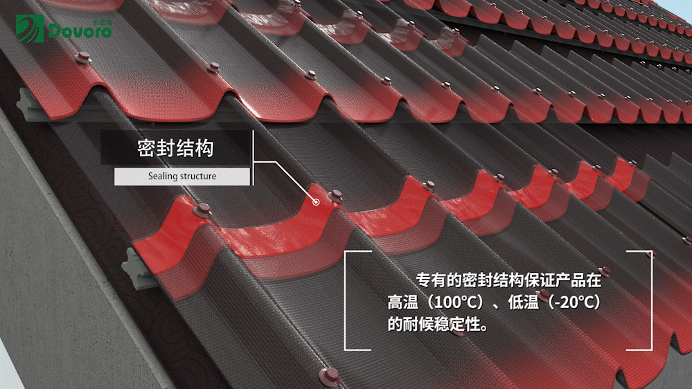 新增加的密封結構,是多富瑞2.0系列的重要升級。多富瑞產(chǎn)品線中的波形瀝青瓦“幻影”“幻景”“幻彩”和“波形瀝青防水板”均進行了升級。