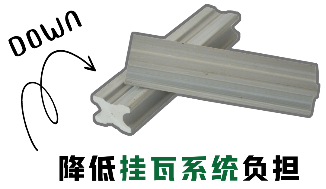 掛瓦條及瓦釘隨著時間推移,材料強(qiáng)度降低。輕質(zhì)的材料可降低掛瓦系統(tǒng)的負(fù)擔(dān),不會因瓦材過重,導(dǎo)致瓦釘或瓦材脫落。