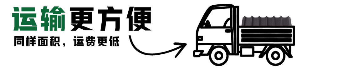 輕質(zhì)的材料對運(yùn)輸有十分重要的影響。更輕的重量,就意味著同樣面積的瓦材,波形瀝青瓦的運(yùn)費(fèi)更低,運(yùn)輸更方便。