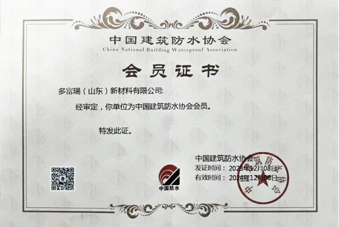 5月,憑借高質(zhì)量的產(chǎn)品和服務(wù)正式成為中國建筑防水協(xié)會會員,多富瑞十年如一日,在防水領(lǐng)域的精耕細(xì)作,致力于推動防水行業(yè)高質(zhì)量發(fā)展,為用戶提供更加優(yōu)秀的解決方案。