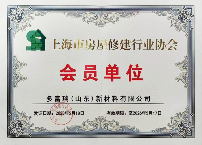 2月,加入上海房屋修繕協(xié)會和上海市房屋修建行業(yè)協(xié)會,體現(xiàn)多富瑞積極為客戶提供高質(zhì)量產(chǎn)品和全方位服務(wù)的決心、信心,同時也是提升產(chǎn)品知名度的重要舉措之一。