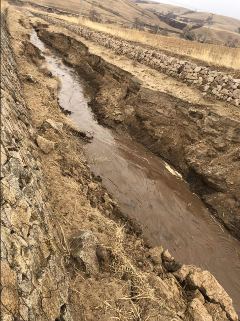 在2018年8月,一場突如其來的暴雨將已驗(yàn)收合格的豐寧滿族自治縣外溝門鄉(xiāng)青石砬村菜園子土地整治(占補(bǔ)平衡)項(xiàng)目部分護(hù)地壩沖毀,排水溝被淤平,30m寬的河床被洪水沖出了3m深的溝槽。